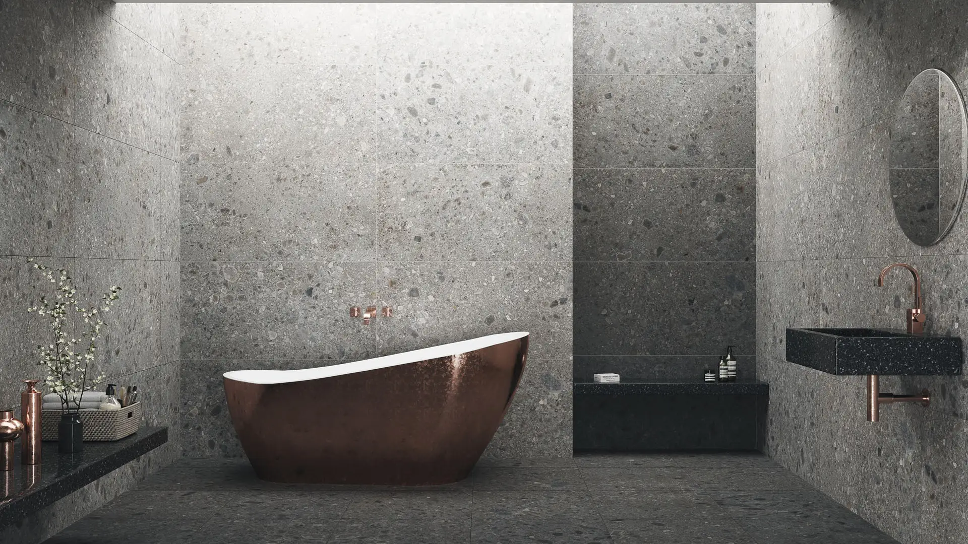 Su diseño es creado por una roca típicamente italiana que se caracteriza por la presencia de otras formaciones rocosas incrustadas dentro de su misma base, eso logra una extraordinaria diferencia entre los típicos terrazos y los estampados de piso que hoy toman fuerza en las tendencias de decoración actual marcado por un estilo atemporal. Aplicación interior y exterior, para uso residencial y comercial.