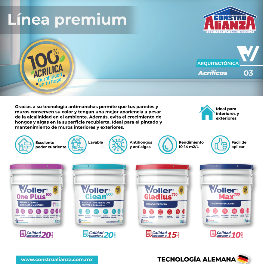 Pintura 100% acrílica, su fórmula innovadora te brinda una gama de colores amplia en acabado mate y brillante. Ideal para el pintado y mantenimiento de muros exteriores, plafones de concreto, aplanados de yeso, madera y tablaroca.